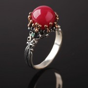 Кольцо из черненного серебра 925° с изумрудами и рубины, бронза