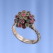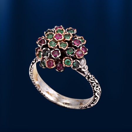 Серебряное кольцо с изумрудом и рубинами