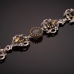Стильный и роскошный ювелирный браслет с 6 гранатами (6,0 х 4,0 мм), кварц ¢ 5,0 мм. Серебро 925°. Бронза. Длинный 19,5 см