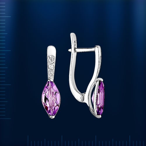 Вставка: 2 аметиста 5,0 х 10,0 мм, фианиты ¢ 1,5 мм