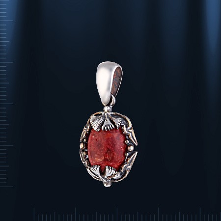 Кулон из черненого серебра 925 пробы с кораллом (10 х 15 мм). Длина ок. 30 мм.
