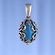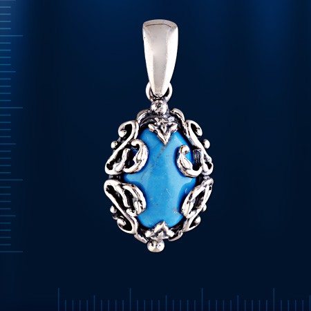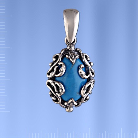Стильный и роскошный ювелирный кулон с крупной вставкой из бирюзы (14 х 10 мм). Серебро 925°.