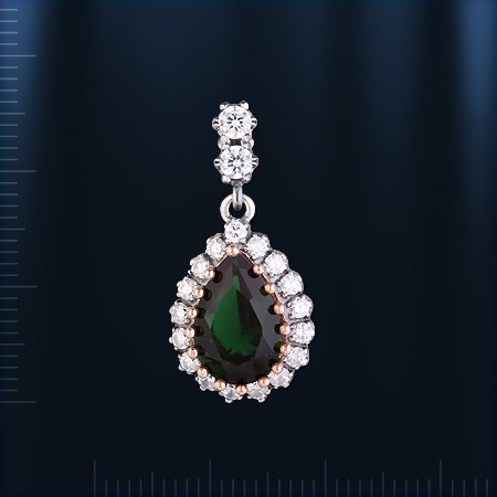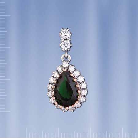 Кулон из черненого серебра 925° с крупной вставкой из циркония (10 х 14 мм), в оправе из циркония ¢ 2 мм., 2 циркония ¢ 3 мм. Высота 27 мм, ширина 14 мм.