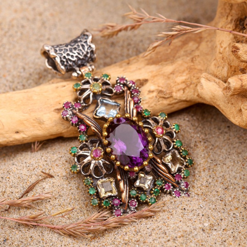аметиста вызывает восхищение и любопытство. Этот минерал привлекает своим цветом всех любителей ювелирных украшений. Изящные украшения с