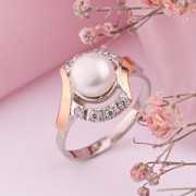 жемчугом. Кольцо выглядит просто и стильно в красивой оправе из серебра 925 пробы с родиевым покрытием и вставками из розового золота 375 пробы. Миссия этого украшения – передать его владельцу самые светлые и высокие чувства! Это удивительное сочетание элегантности, легкости и индивидуальности придает украшению особый шарм и вдохновение.