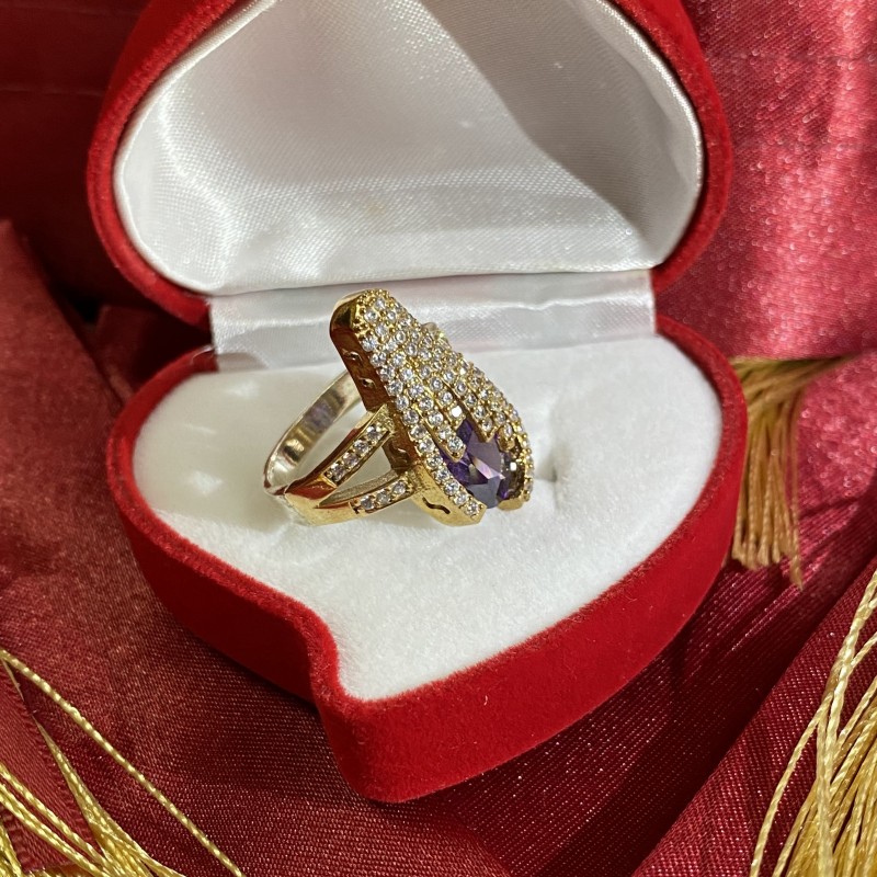 аметистом и цирконием. Благодаря умело расставленным акцентам с помощью позолоты кольцо выглядит неповторимо красиво. Отличное дополнение вашего образа женственности и романтики.