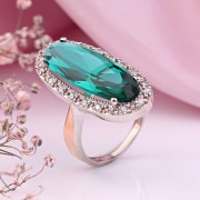 фианитами изумрудного цвета. Кольцо выглядит лаконично и стильно в красивой оправе из серебра 925 пробы и