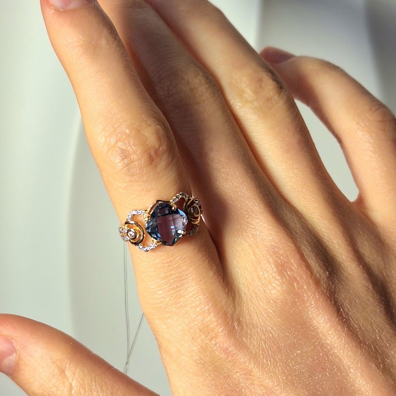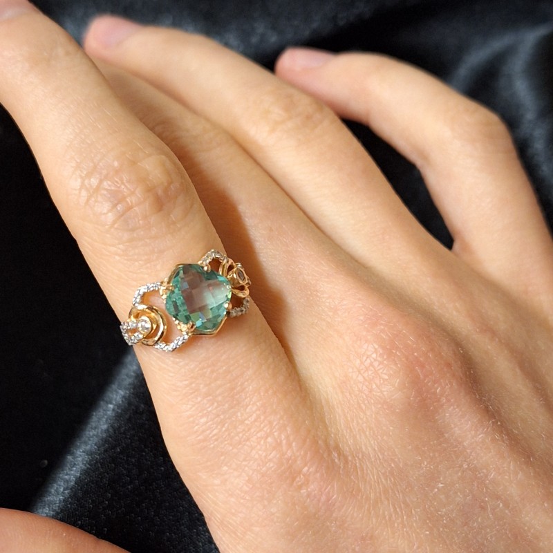 Очаровательное серебряное кольцо из серебра 925 золота, украшенное цирконом и нанотрурмалином