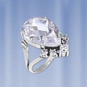 Кольцо из черненого серебра 925 пробы с крупной вставкой из фианитов (20 х 15 мм) ¢ 4 мм и ¢ 3 мм