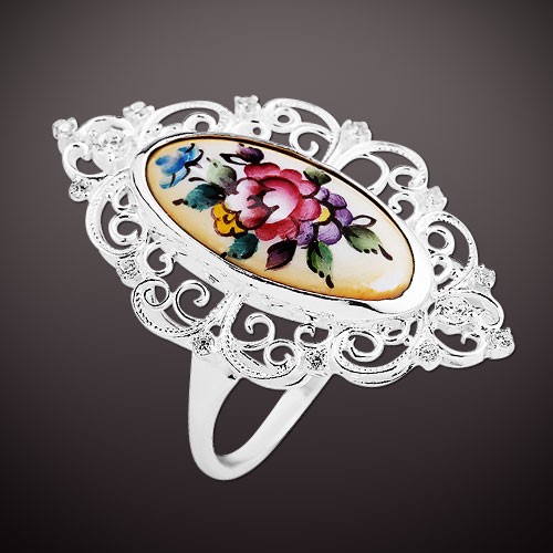 Кольцо серебро 925° с эмалью, 14 фианитов ¢ 1,0 мм. Кольцо покрыто родием