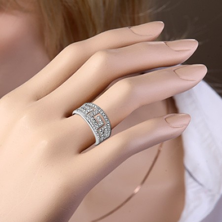 Серебряное кольцо 925° покрыт родием< /span> с фианитами ¢ 1,0 мм, являющимися прекрасной имитацией бриллиантов.