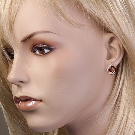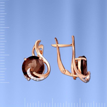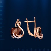 Серьги из красного золота 585°, украшенные 2 дымчатыми топазами (10,0 х 10,0 мм, 1323 карата). 22 Фианита. Эти ослепительные серьги порадуют вас красотой и элегантностью.