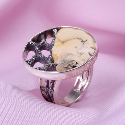Кольцо из серебра 925 пробы со вставкой из натурального янтаря (25,0 х 15,0 мм)