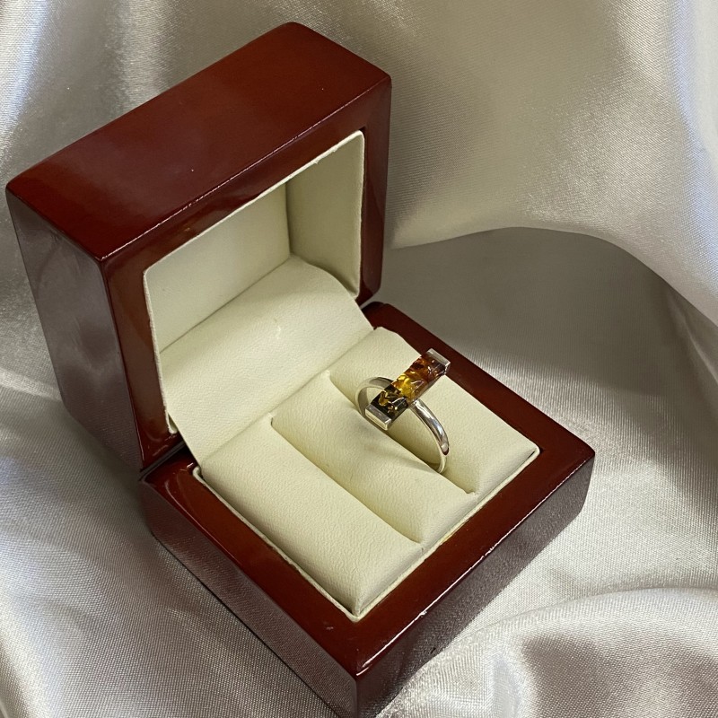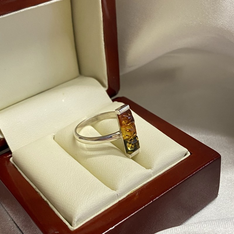 Серебряное кольцо с янтарем. Триколор