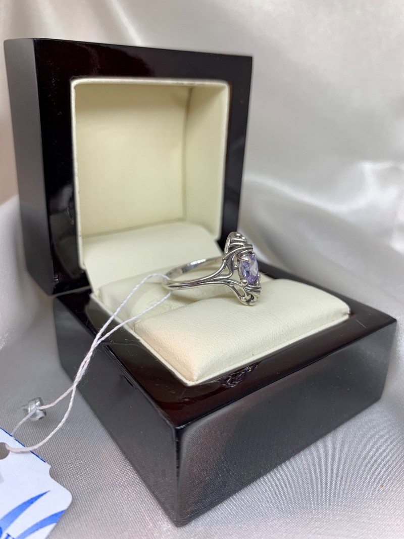 Восхитительное нежное кольцо с очаровательным ярким аметистом в красивой серебряной оправе из черненого серебра 925 пробы.