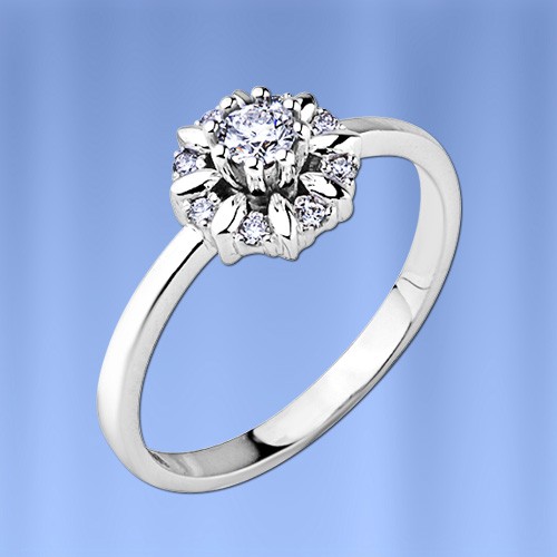 Кольцо из белого золота 585°, украшенное D: 0.17G-HVVS; Д: 0,08Г-ХВС