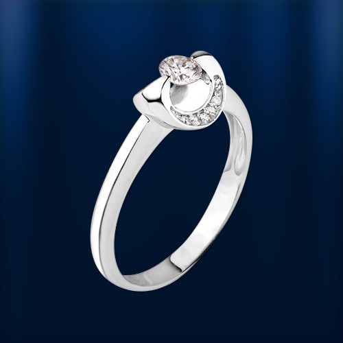 Кольцо из белого золота 585°, украшенное бриллиантами классической огранки 0,20GH VVS; Алмазы 0,03GH против