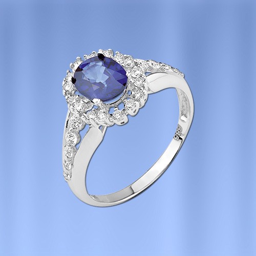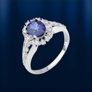 Кольцо из белого золота 585°, украшенное бриллиантами классической огранки 041G-HVS; Сапфир 8,0 x 6,0 1,64