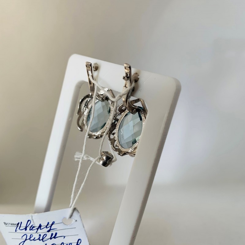 Очаровательные серьги из серебра 925 пробы со сверкающим голубым кварцем! Покрыт родием!