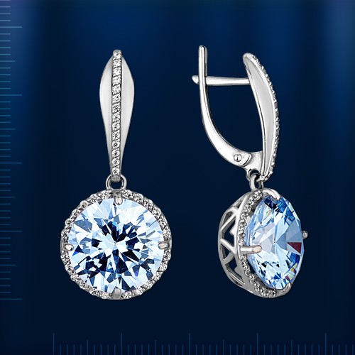 Серьги из серебра 925°покрыто родием. Вставка: 2 кварцевые 14,0 мм