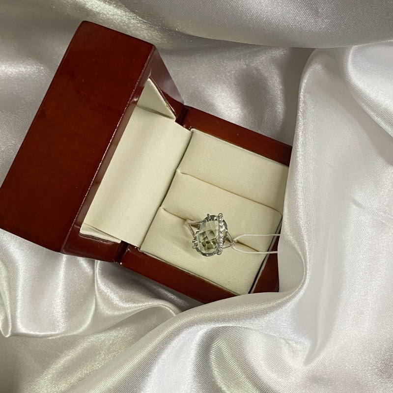 Восхитительное нежное кольцо с очаровательным зеленым кварцем и цирконием в красивой серебряной оправе из серебра 925 пробы. Родиевое покрытие!