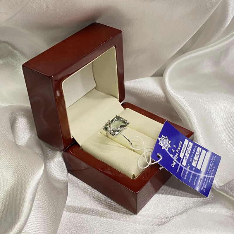 Вставка: 1 кварц зеленый радиант 14,0 х 10,0 мм; Цирконий Ø 1,0 мм