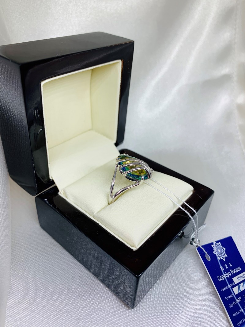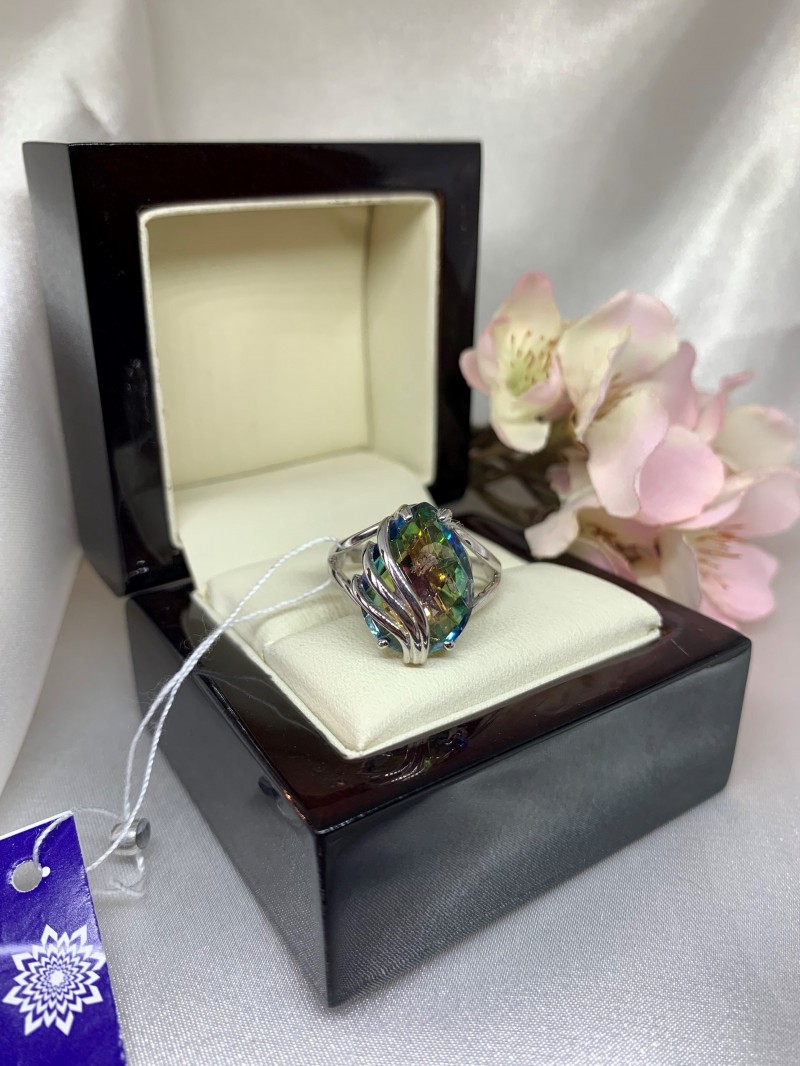 Восхитительное нежное кольцо с очаровательной кварцевой мистикой в красивой серебряной оправе из серебра 925 пробы.