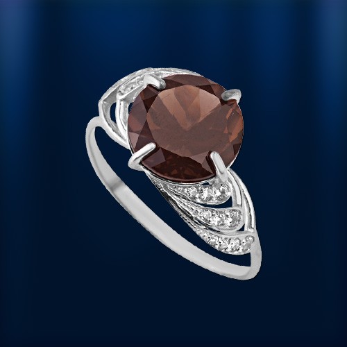Кольцо серебро 925° с кварцем (10,0 мм), фианитами ¢ 1,0 мм. Кольцо покрыто родием