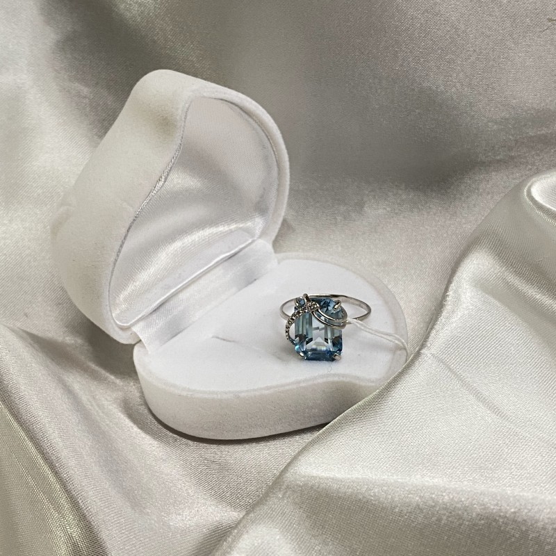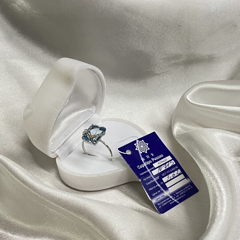 Восхитительное нежное кольцо с очаровательным голубым кварцем и цирконием в красивой серебряной оправе из серебра 925 пробы.