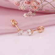 Русское золото 585 цирконий. Очаровательные женственные серьги-пусеты из 14-каратного
