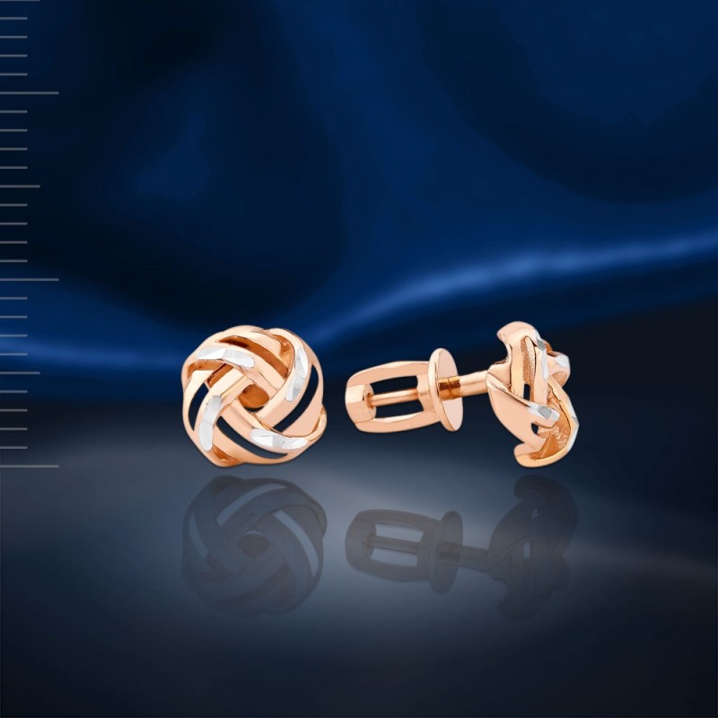 Серьги-пуссеты из русского красного/белого золота 585 пробы. Размер примерно 8,0 мм х 8,0 мм