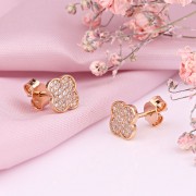 красного золота с цирконием 585 пробы. Очаровательные женственные серьги-пусеты из 14-ти каратного