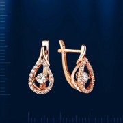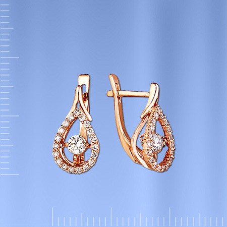 Серьги из российского красного золота 585° с 38 бриллиантами классической огранки 0,291 карат, 2 бриллиантами классической огранки 0,291 карат. Высота ок. 15 мм