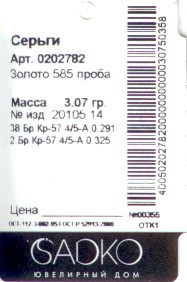Каждое изделие имеет клейма, проверенные Государственным клеймением Российской Федерации. Кроме того, каждое ювелирное изделие снабжено запечатанными сертификатными этикетками от производителя.