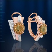 Серьги из серебра 925° (позолота), украшенные 2-мя султанитами ¢ 8,0 мм, фианитами ¢ 1,0 мм