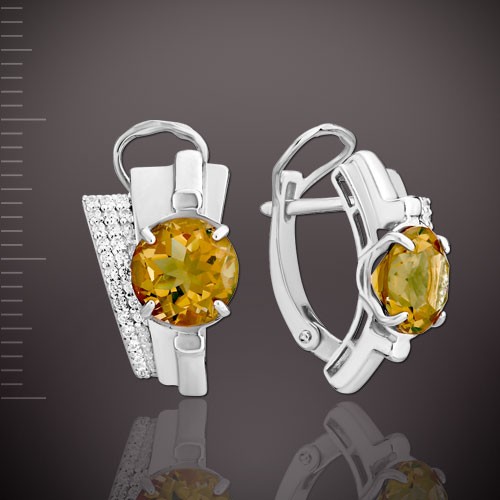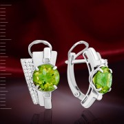 Серьги из серебра 925 пробы, украшенные 2-мя султанитами ¢ 8,0 мм, фианитами ¢ 1,0 мм