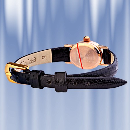 Элегантные женские часы из золота 585 пробы. Размер циферблата 18 х 14 мм. Браслет (длина 22 см): Натуральная кожа. Механизм: Япония, "Citizen Co. Ltd" Гарантия: 12 месяцев. Тип: Кварц. Защита от пыли и брызг. Избегайте прямого контакта с водой.