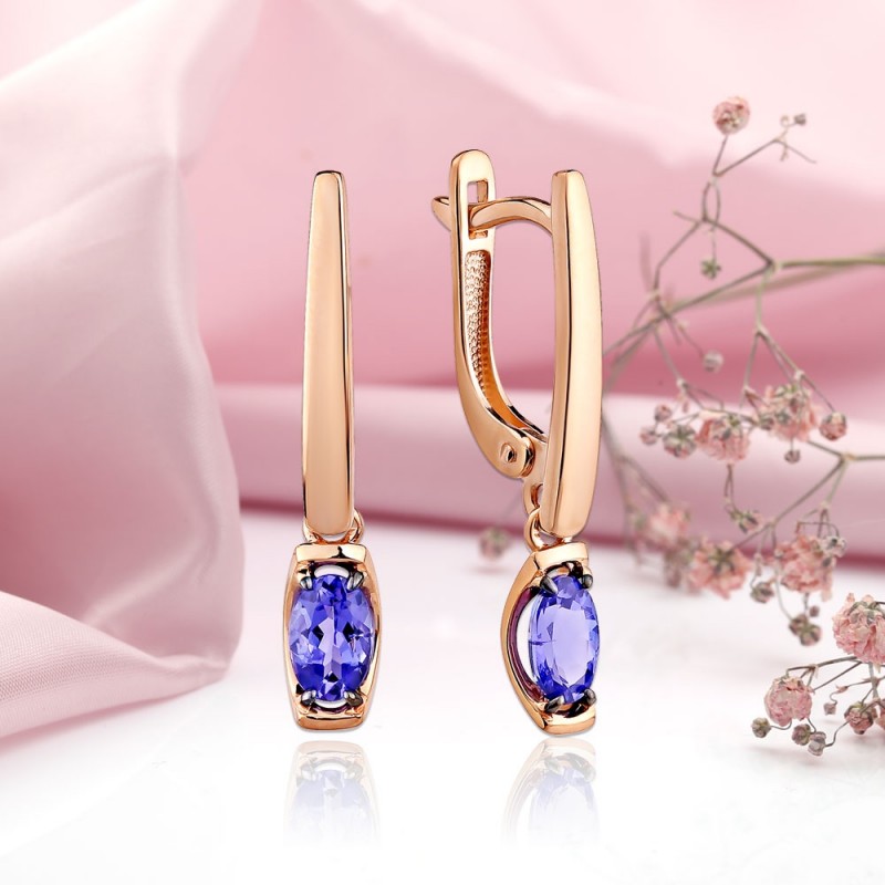 красного золота 585 пробы с очаровательным танзанитом. Если вы хотите подчеркнуть в своей спутнице ее женственность, грацию, улыбку и красоту, то такой подарок как раз для вас.