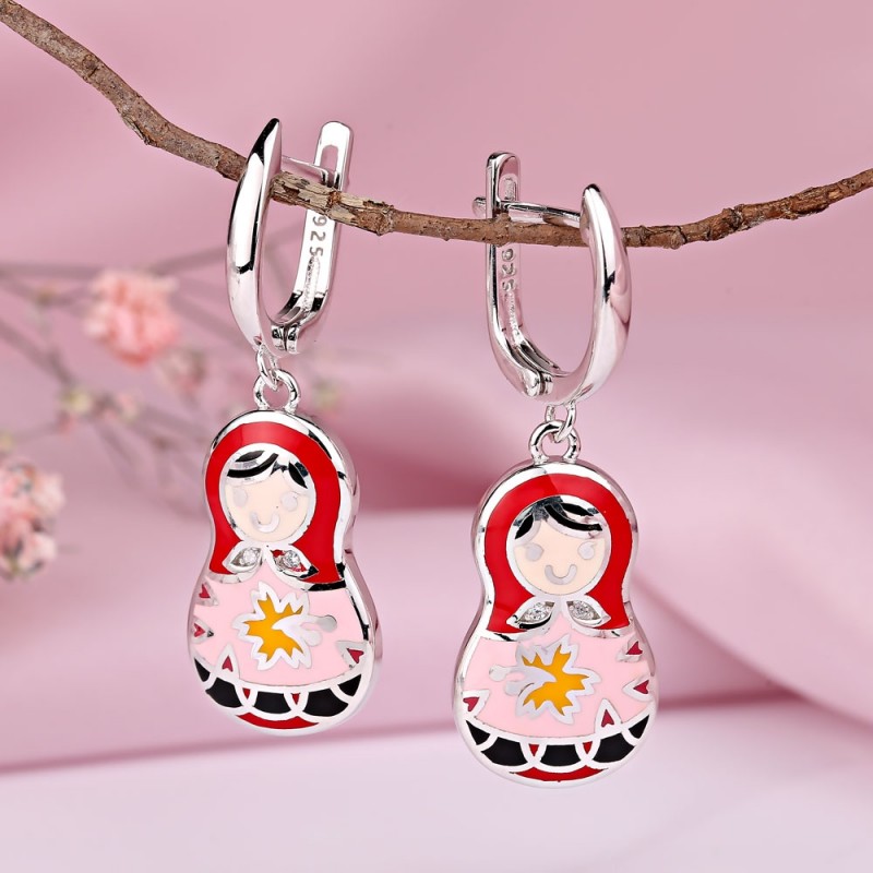 Очаровательные серебряные серьги из серебра 925 пробы со вставками из сверкающих цирконий и цветной эмали! Такое изделие подчеркнет нежность, женственность и очарование своей хозяйки!