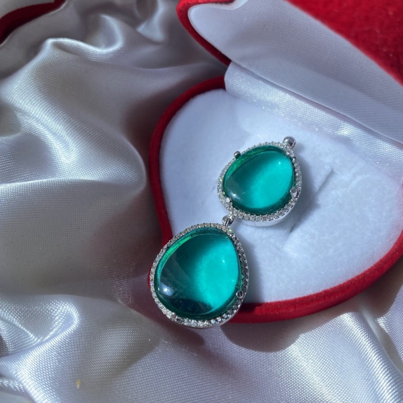 Вставки: 2 турмалина 19,0 х 17,0 мм; 2 турмалина 17,0 х 14,0 мм; Цирконий Ø 1,0 мм