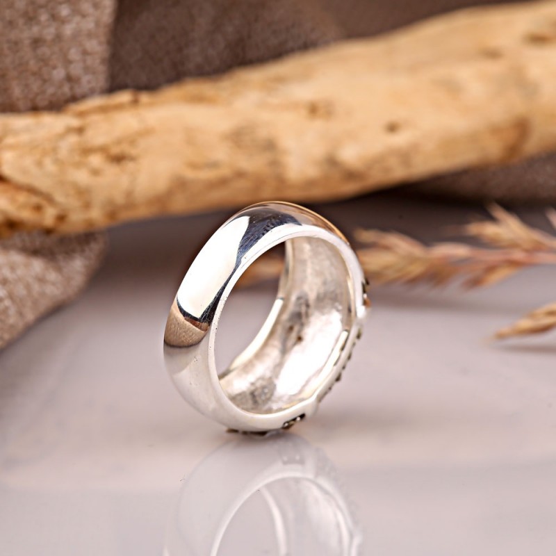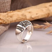 Оригинальное кольцо из черненого серебра 925 пробы с глубокими вставками из марказита. Такое кольцо подчеркнет утонченность вкуса и красоту женских рук.