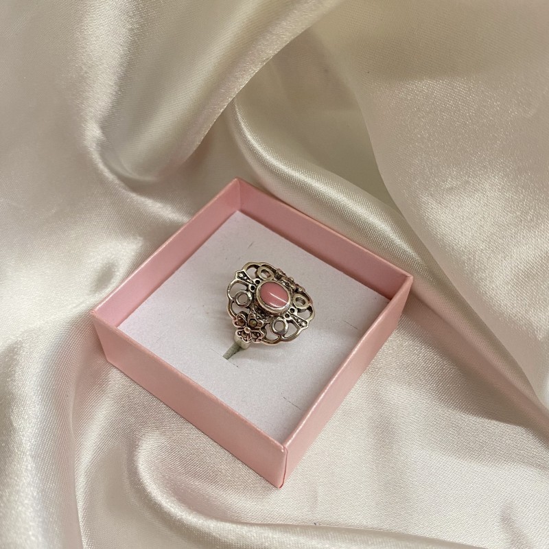 Красивое кольцо из черненого серебра 925 пробы с очаровательным розовым