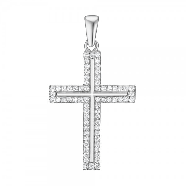 Подвеска-крестик из белого золота с бриллиантами