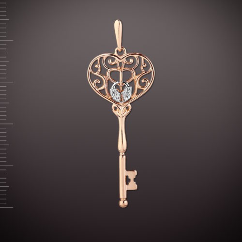 Кулон выполнен из российского красного/белого золота 585° с 4 бриллиантами 0,011 карат