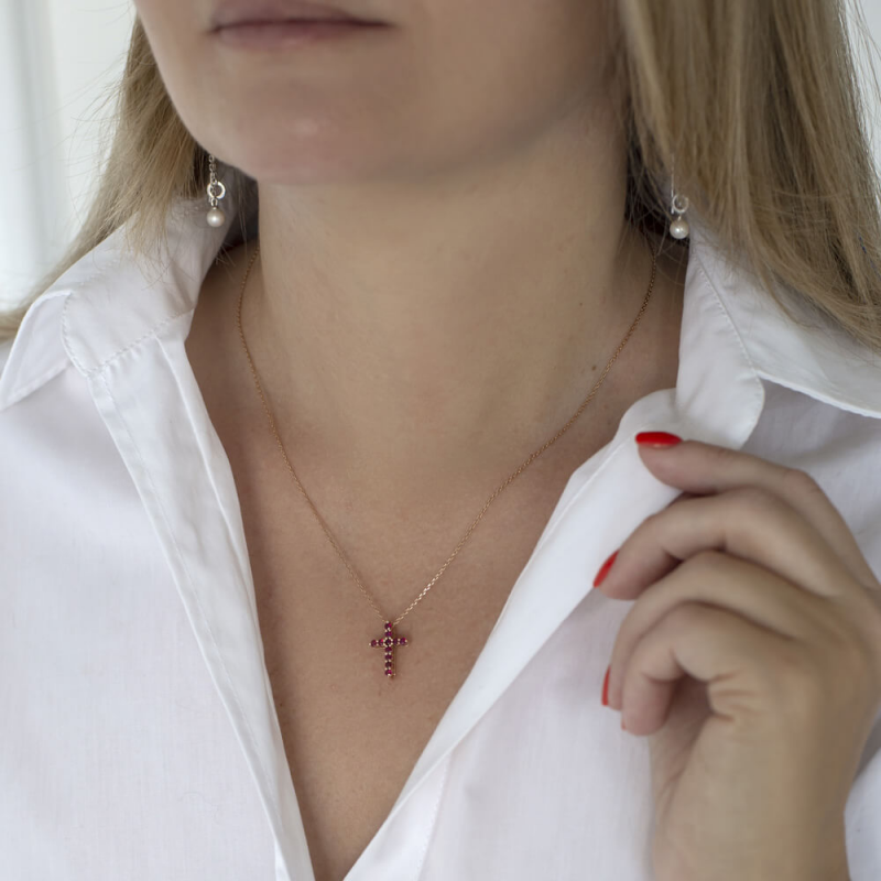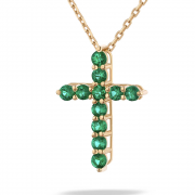 Классическая подвеска-крестик из красного золота с изумрудами. Цепочка включена в цену.