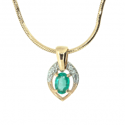 Легкий и изящный кулон в красном золоте с изумрудом и бриллиантами.