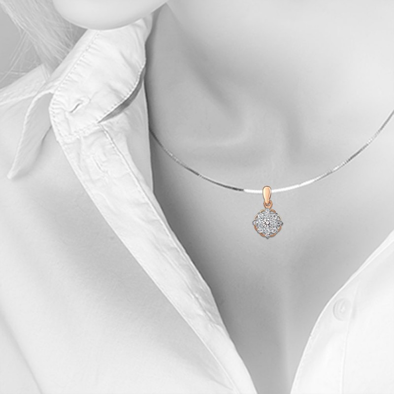 Красивый кулон из белого/розового золота 585 пробы, украшенный цирконием. Эти ослепительные серьги поразят вас красотой и элегантностью.