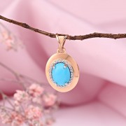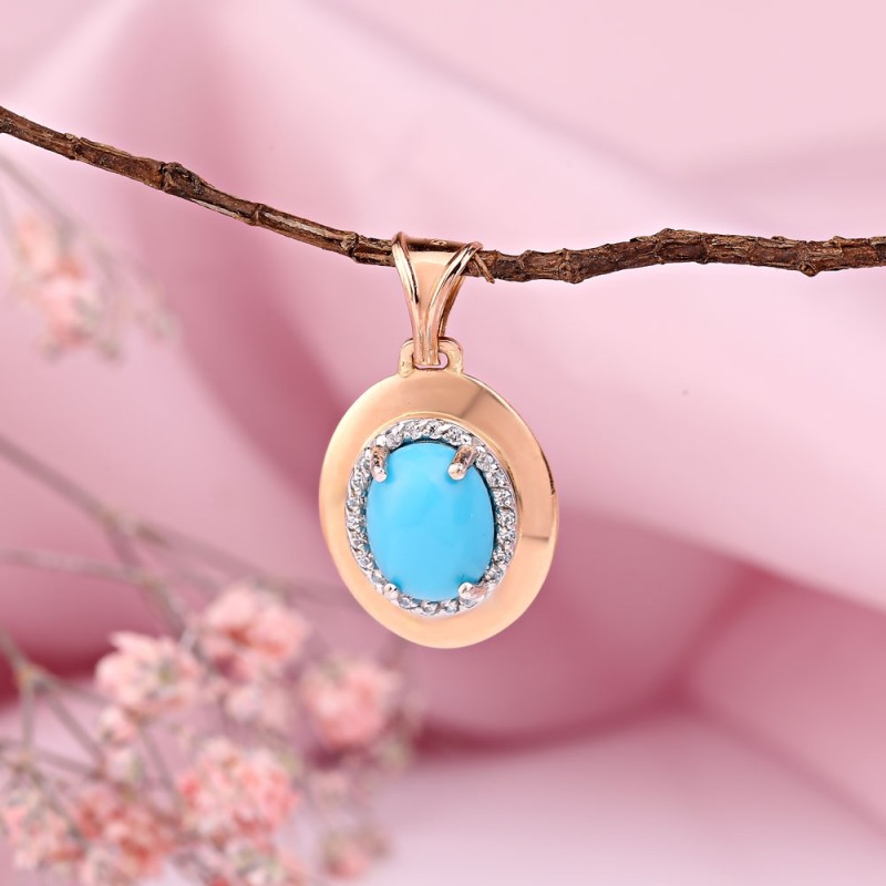 Красивый кулон из белого/красного золота 585 пробы, украшенный циркониями и крупной бирюзой. Если вы хотите подчеркнуть в своей спутнице ее женственность, грацию, улыбку и красоту, то такой подарок как раз для вас.