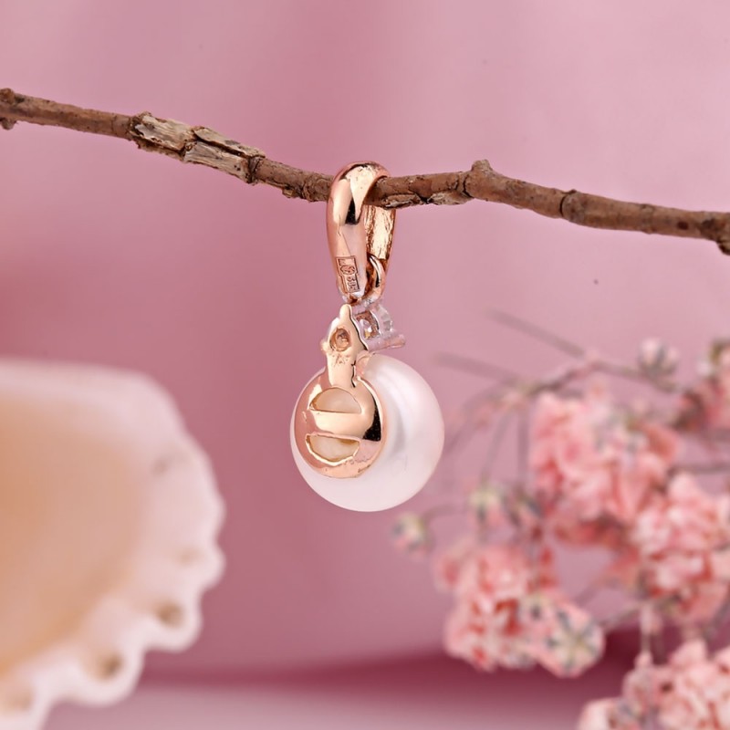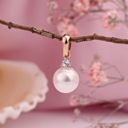 Очаровательный кулон из белого и красного золота 585 пробы, украшенный сверкающими циркониями и красивым культивированным жемчугом. Очаровательный подарок для Ваших близких!