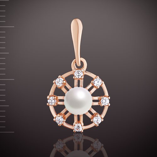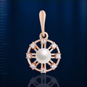 Подвеска из красного золота 585°, украшенная жемчугом 4,5 - 5,0 мм